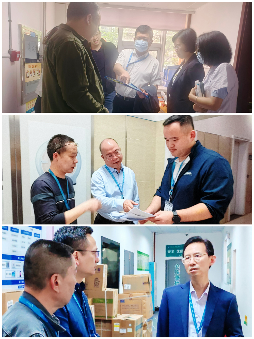 在配电间、能源动力中心、药房、机房等重点场所,检查组对设备安全、药品安全、信息安全分别进行专项检查。要求确保全院各类设备运行正常,操作人员均进行过专业培训;强调各类药物储存得当、管理规范等要求;排查安全隐患,保障网络信息安全。
