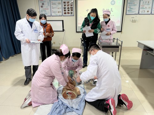 12月13日下午,中南大学湘雅三医院乳甲外科在外科楼17楼示教室举办“劳动美 技能美”情景模拟基础生命支持岗位技能大赛。此次竞赛由护士长王玲主持,特邀第四党支部书记孙慧蓉、乳甲外科主任钱立元、科护士长龚妮为比赛做指导及点评。