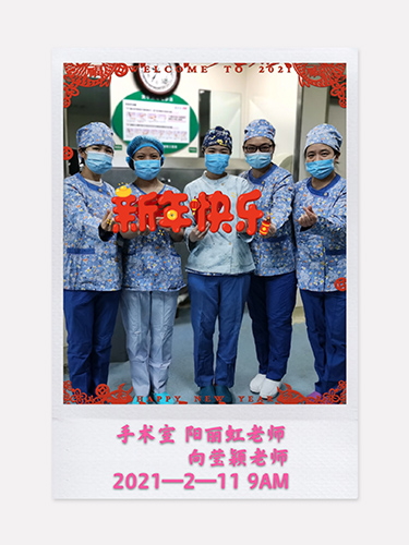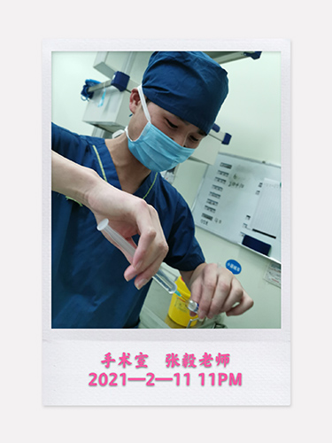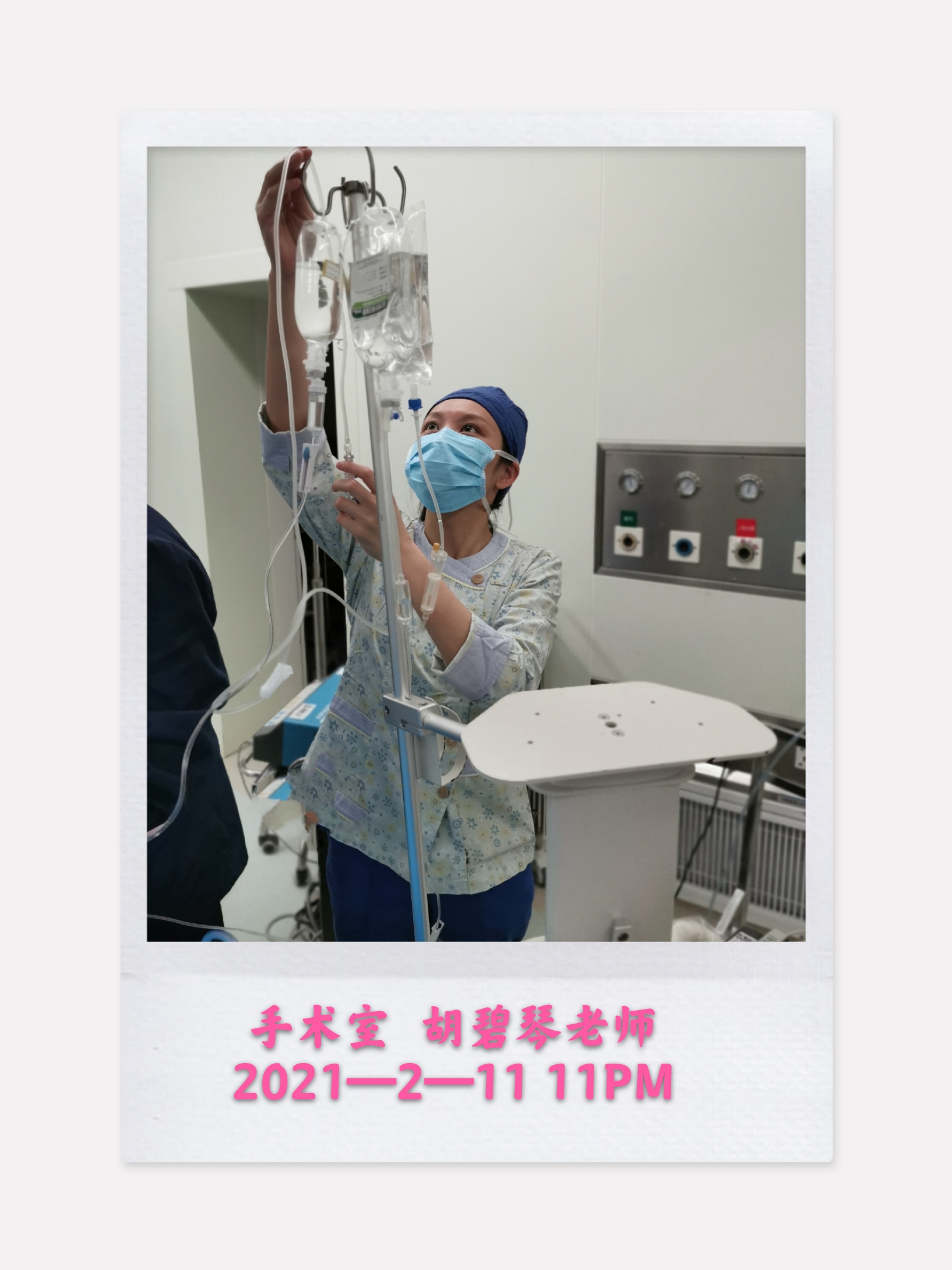 据统计,手术室大年三十白天眼科杨叶蓁老师进行了角膜修复术1台,妇科肖松舒教授妇科手术4台,还有普外清创缝合术等。手术室护师阳丽虹、向莹颖、胡碧琴、张毅,麻醉师李津、黄忻怡,邱伟城等奋战在临床一线的最美医行者们在无影灯下用精湛的操作和忘我的境界,书写一步步生命传奇。下面请查看除夕夜无影灯下的最美身影。