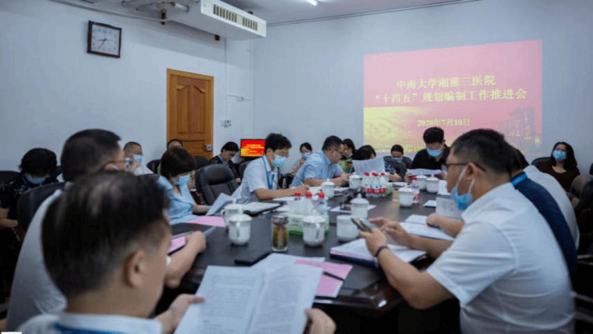 根据中南大学、国家卫建委关于“十四五”规划编制工作的要求及2020年医院重要工作部署,医院启动了“十四五”规划编制工作。7月10日上午,医院“十四五”规划编制工作推进会在综合楼一会议室召开,会上听取了领导小组下设的3个工作组的规划基本思路和编制工作的进展情况汇报,并对下一步全面推进规划编制工作进行了部署。医院党委书记何庆南,院长张国刚,党委副书记杨飞龙,医院党委委员、副院长朱晒红、黄飞舟,医院党委委员、总会计师汤英及全体职能部门负责人出席会议。党委副书记杨飞龙主持会议。