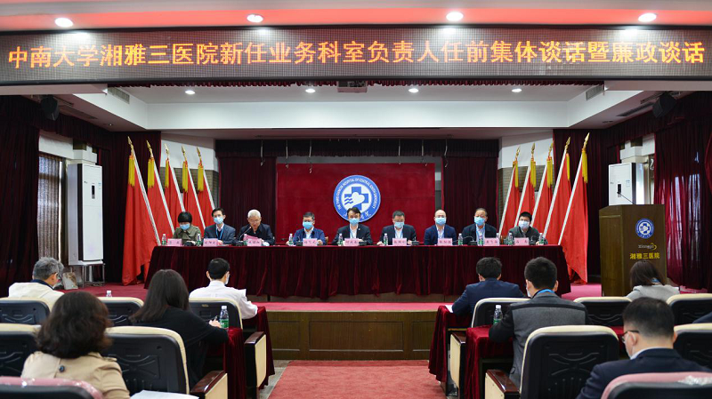 4月21日上午,中南大学湘雅三医院新任业务科室负责人任前集体谈话暨廉政谈话会议在门诊5楼多功能厅召开。全体院领导出席,相关职能部门负责人、党总支书记参加。138名新任业务科室负责人参加谈话并签订党风廉政建设承诺书。会议由党委委员、副院长朱晒红主持。