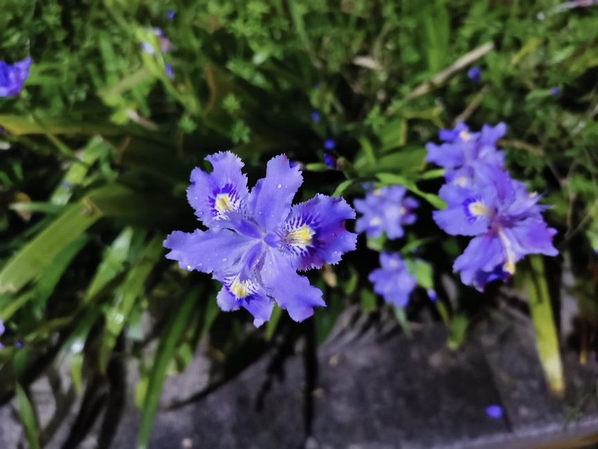 晚上从发热门诊下班,看到医院花坛里的蝴蝶花开了。在淅淅沥沥的夜雨里,蓝紫色的花朵静谧地绽放。似翩然欲飞的蝴蝶,如守望黎明的精灵。