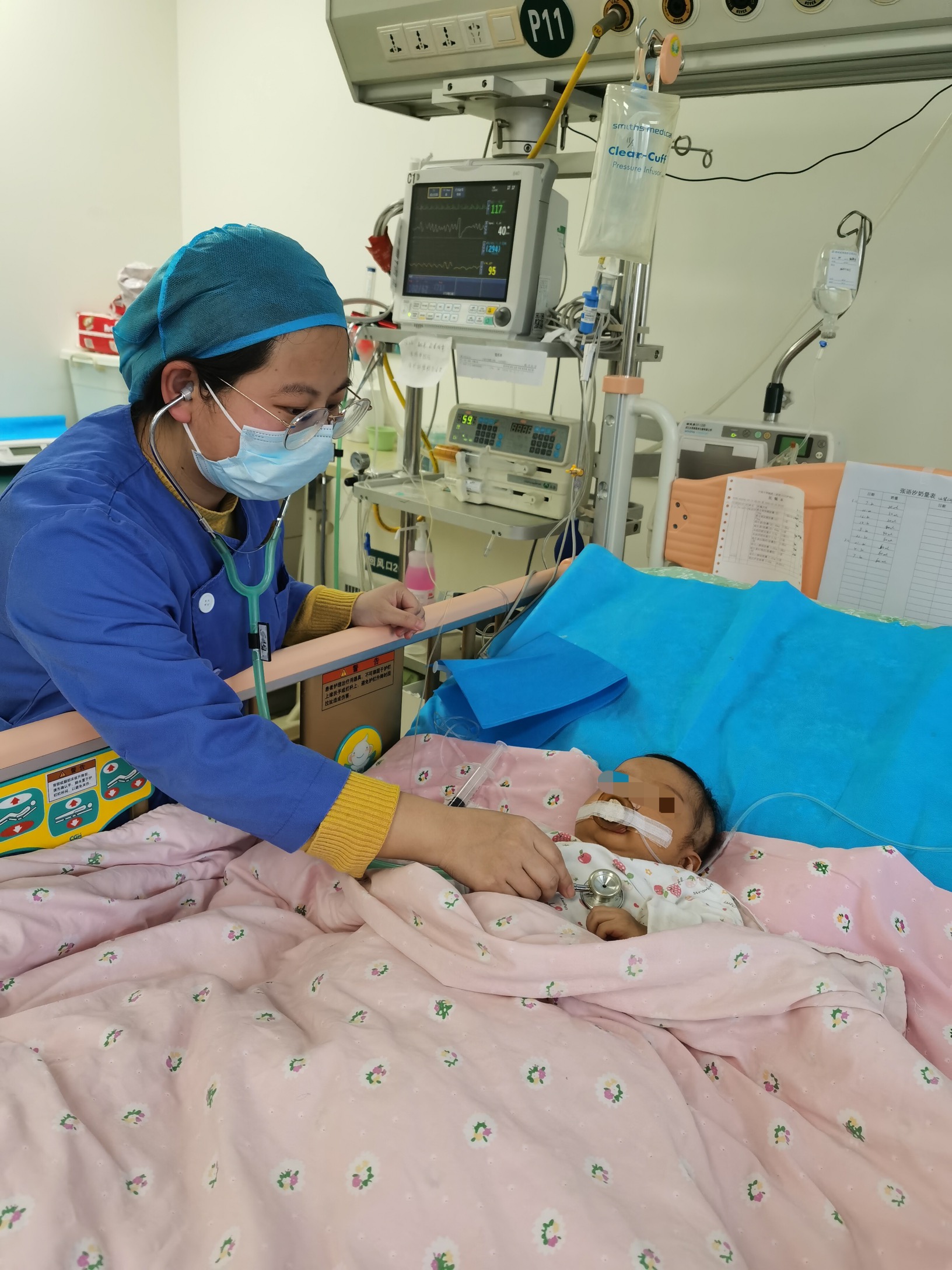 我留在科室继续值班,2-3天一个晚夜班。因为疫情的原因,病人并不如往常的多,但是小儿重症监护室,仍然会有惊心动魄的时刻。2月23日凌晨1点多,正是我的晚夜班,一个13岁肺癌Ⅳ期、喉梗阻Ⅳ度的小女孩病情加重,经抢救无效家属签字放弃了,送走了这个小女孩后我整夜无眠,遗憾一个鲜活的生命就这样逝去。3月4日,我的白班,急诊入院一位4个月大小的“脓毒症休克、多器官功能衰竭、肝硬化、胆道闭锁术后”的危重患儿,经抢救后病情无好转。3月5日,正是我的晚夜班,晚上10点左右,患儿出现DIC、消化道大出血,血红蛋白下降至27g/L。我在陈淳媛教授、江杰副教授、田静总住院医师的指导下通宵达旦抢救患儿,连喝水的机会都没有就迎来了新的一天。老师们都心疼地要我先吃点东西,稍微休息一下再写病历。因为这个重症患儿的到来,至此,我经历了申请各专科会诊、全院大会诊、携带呼吸机带患儿外出检查、腹腔包块置管检查、反复输各种血液制品、持续血液净化等等在小儿重症监护病房普通但又极为惊心动魄的抢救工作,与死神进行了一场殊死搏斗!一天天的精心守候及治疗,终于看到患儿的各项指标一天天在好转。截至3月13日,该患儿终于脱离生命危险,科室全体医护人员也都为她感到高兴和欣慰,我也积累了抢救危重患儿的临床经验,收获多多,我为我的留守感到庆幸。