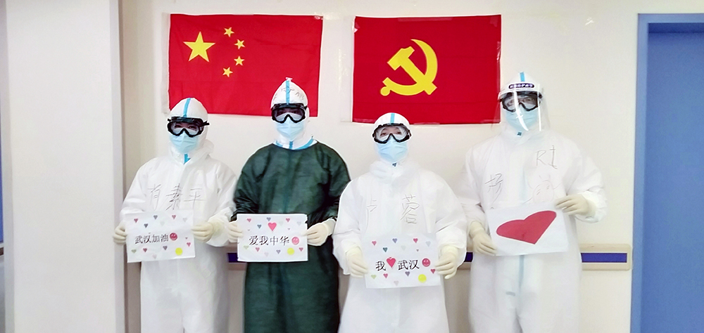疫情爆发之后,全国各地许多医护人员为了守护每个普通的家庭,都义无反顾加入了这场没有硝烟的武汉“抗疫”战。在这场战斗中,全国的白衣天使们,与时间赛跑,与强大的“怪兽”战斗,普写着百毒不侵的白衣战士诺言。没有彷徨,没有退缩,穿着厚实的而笨重的防护服,带三层手套、N95口罩、护目镜、防护面屏,外面再穿一层隔离衣,把顽强狡猾的病毒隔离在外,穿梭在隔离病房,把爱和健康传递给每一位病人。多少次汗水渗湿了我们全身的衣服,多少次口罩和帽子在额头、面部勒出了一道道痕迹,多少次夹着重重的尿不湿奔跑于病房。但是湖南人不怕苦,不怕累的精神是无法被打败的,我们更是深知,只有打赢已场战“疫”,才能守护好所有武汉人民和全中国人民的平安。在这场战“疫”中,所有的医生、护士、患者,齐心协力,配合默契,共同抗“疫”,向着胜利前行。