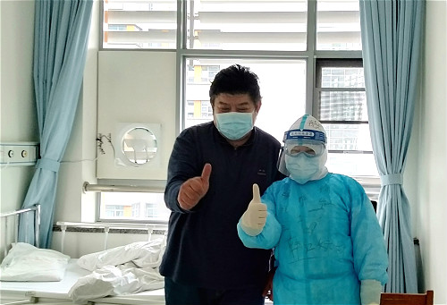 驰援武汉已经大半个月,抗击疫情,众志成城,人人有责。我作为此次出行的临时党总支青年委员也深知自己责任更加重大,我们133人每天精神饱满地面对这一场没有硝烟的战斗,时刻都不松懈。看到一批批的患者通过我们的治疗顺利康复出院举起大拇指夸我们时,那种心情别提有多开心。今天上班迎接了5位新病人,其中有一位大哥一看到我就说她认识我看见过我,我心里当时在想防护措施包裹的这么严实唯独两只眼睛漏出来他也认识我?为了逗他开心,我便指着自己的衣服说:“我是韩红的妹妹,你肯定认识啊。”可不知他立马接上一句:“难怪,因为我是刘欢的哥哥啊,那必须合影一张。”顿时病房传来一阵阵笑声,就这样我便成了他在住院期间的“临时家属”。