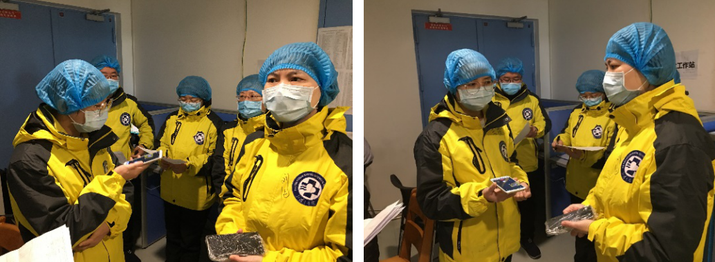 刘纯说:“今天是我们来到同济医院中法新城院区的第9天,在这9天中,我们慢慢熟悉了这陌生的工作环境、陌生的工作系统以及陌生的搭档,最最关键的是我们已经熟悉了这陌生的疾病。我们队员之间、医护之间以及与同济同行之间的磨合也越来越融洽,同时与中法新城院区兄弟科室如麻醉科、医务科、院感科等的沟通与配合越来越紧密。为了更方便的诊治患者、更好的开展工作,提高患者的治愈率与生存率,今天我们进行一次所有医护人员的集体大交班。”