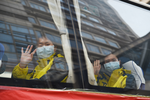 出征名单确定下来已是深夜。疫情紧急,开拔时间定在第二天下午三点,万家团圆的元宵节。清早,张浩主任就召集科室7名出征队员,对我们事无巨细进行交代,他把我们比作勇士,鼓励我们把职业生涯中难以忘怀的这段人生经历当作一笔宝贵的财富,并要我们保护好自己,平安归来。护士长吴琼英几度哽咽,她如同母亲送别出嫁的闺女般依依不舍。接下来,马不停蹄地开会、培训、剪发、注射增强免疫力药物等。同时,科室姐妹们也没闲着,把她们的爱和担忧化作沉甸甸的行李箱陪伴我们出征。当车子开动 ,隔着车窗,送行的同事挥着手,她们被口罩遮住的脸上,露出温暖的眼神,这其中有难分难舍的情怀,有嘘寒问暖的关心,更有情同姐妹的爱心。