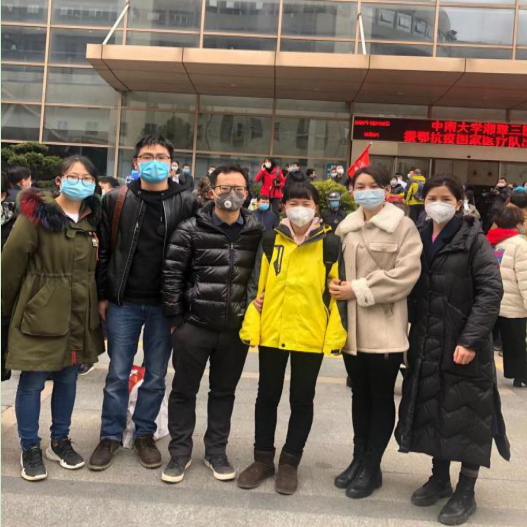 2月7日晚,医院接到国务院应对新型冠状病毒肺炎疫情联防联控机制(医疗救治组)《关于组派部分委属委管医院医疗队援助湖北应对新型冠状病毒肺炎疫情的函》,立马号召湘雅三医院组建130人援鄂医疗队挥师北上,驰援武汉。张洁得知消息第一时间就主动请缨。我开始既担心又不忍心,看着她瘦小的身板,还有才5岁又特别粘妈妈的崽崽,再加上张洁和她老公都是独生子女,家里的父母年岁渐高,也需要人照顾。我反复跟她确认说,前线条件很艰苦,你的身体受得了吗?你的崽崽还那么小?你真的考虑清楚了吗?张洁毫不犹豫地说,她早就做好了心理准备,要去武汉,去最前线。2月8日正值元宵佳节,本是个阖家欢乐的日子,科室同事刘芳、易婷婷、刘恬、王月和朱利勇一起满怀爱心地给张洁紧急准备出发行囊。她即将上车的刹那,我实在心疼不已,转身早已泪流满面……