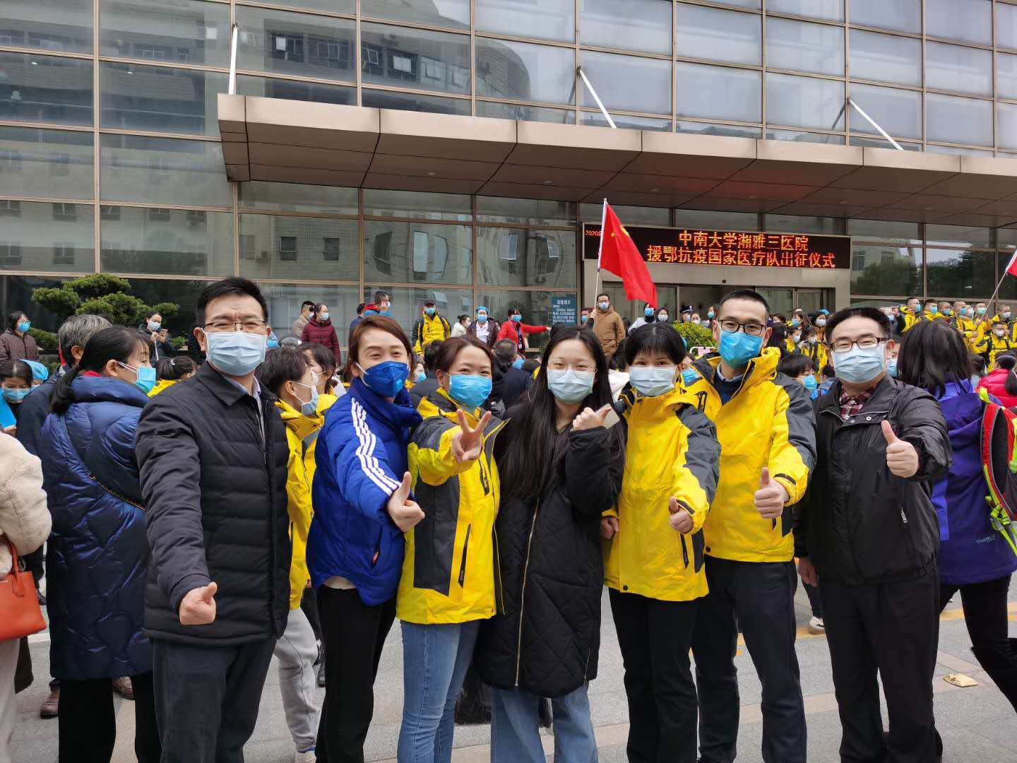 我在三院出生,也在三院长大。看着外科楼、健康管理中心、风雨长廊、直升机停机坪一点点建起,也看着熟悉的人来来往往在这里奉献自己的心血。今天出发的广场上有太多太多我熟悉的面孔,是妈妈的同事,是儿时玩伴的长辈,是中学同学的父母……我在每一个长辈的眼里看到的都是欣慰,欣慰湘雅人的责任与担当,也欣慰我们这些小湘雅人的成长与努力。当送走医疗队的人员和物资后,我发现这是我见过最冷清的三院。没有喧闹拥挤的病人与家属,科室尽量精简人员排班,尽可能多的腾出人员支援发热门诊,支援武汉。第一次进医院不用找车位到处都可以停车,第一次听不到医院人群的喧闹,第一次外科楼的电梯不用排队,也是第一次有点怀念热闹的医院。