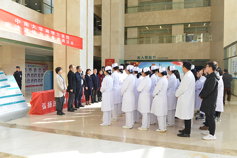 12月4日上午,中南大学湘雅三医院“宪法宣传与法务咨询活动”在外科楼一楼举行,医院党委副书记杨飞龙出席活动启动仪式,党委宣传部、门诊部、安全保卫部、护理教研室等科室职工、法律顾问、患者及病友共80余人参加,活动由法务办负责人杨梅瑰主持。