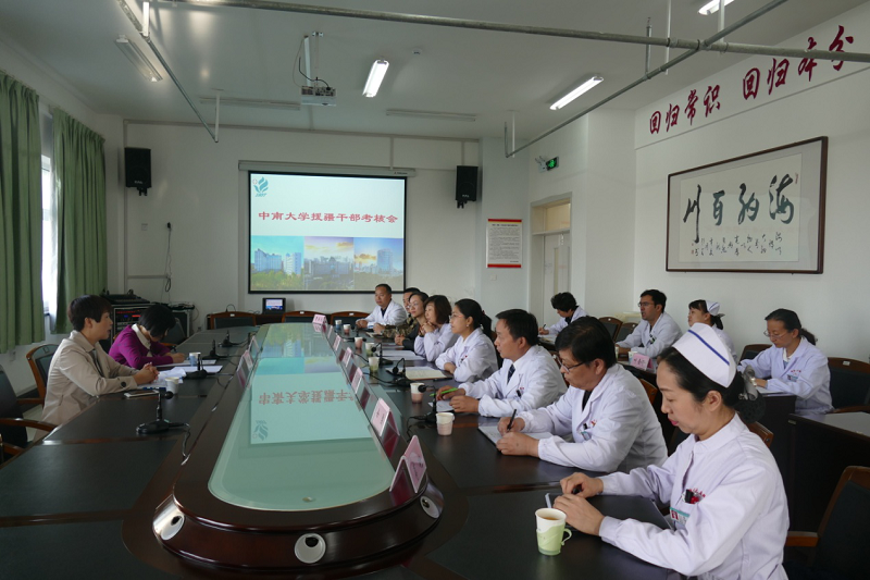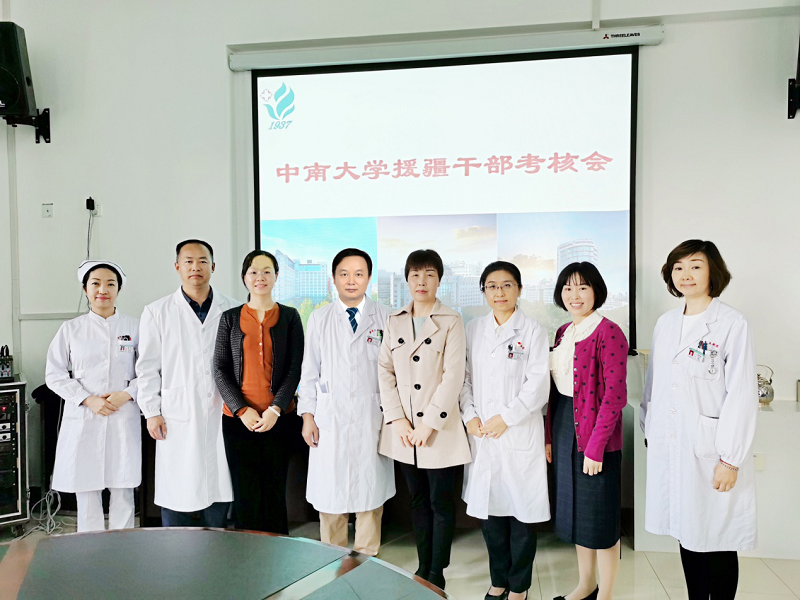 2019年10月10日下午,中南大学党委组织部副部长邹庆林、中南大学湘雅三医院人力资源部主任雷俊一行赴新疆医科大学第五附属医院考核中组部第九批援疆满一年人员——湘雅三医院耳鼻喉科援疆医生刘火旺副主任医师。