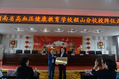 成立授牌仪式由韶山市人民医院副院长蒋纲要教授主持。韶山市人民医院医护人员、中华护理学会专家组团队、省护理学会科普工作委员会核心成员、湖南省高血压健康教育学校讲师团成员近200人参与了此次活动。
