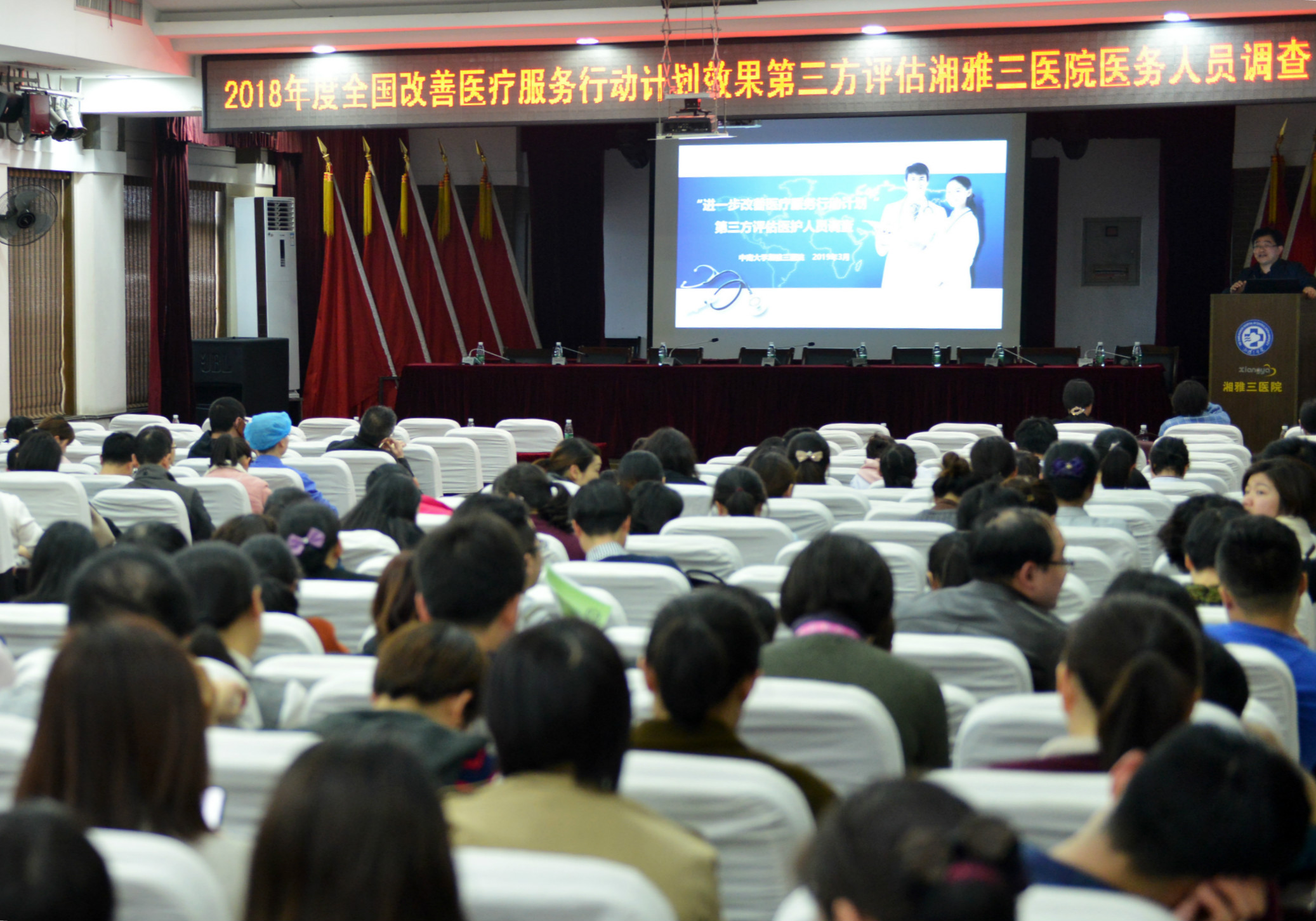 3月21日至28日,2018年度全国“进一步改善医疗服务行动计划”效果第三方评估在中南大学湘雅三医院开展。由国家卫生健康委、湖南省卫生健康委联合指派专家督导组、调查员通过医院调查、医护人员与患者抽样问卷调查、现场核查、典型案例征集等方式,对医院改善医疗服务行动的效果进行全方位评估。此次评估工作由医院评价部牵头,网络信息中心、医务部、护理部、门诊办、人力资源部、药学部等多部门联动,全院医务人员、患者及家属积极参与。