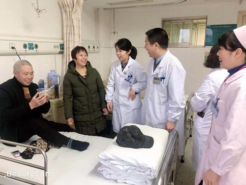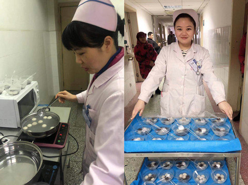 “元宵节快乐,好好配合医生护士治疗,祝福您早日康复!”2月19日当日下午,护士长及可爱的护士人员们将热气腾腾的汤圆送到了住院患者手中并送上了自己的祝福。