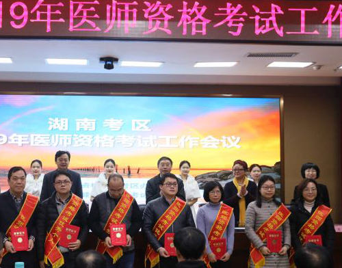 2019年1月28日,湖南省2019年医师资格考试工作会议在湖南省卫健委会议中心召开。会议由省卫健委医政医管处高纪平主持,对2018年湖南省医考工作进行了全面总结,对优秀考点、基地、优秀考务人员和考官进行了表彰,对2019年工作进行了部署和展望。湖南省卫健委副主任龙开超出席会议并总结发言,省医考中心领导、各考点考试基地负责人及优秀考官、优秀考务人员代表100多人参加了此次会议。