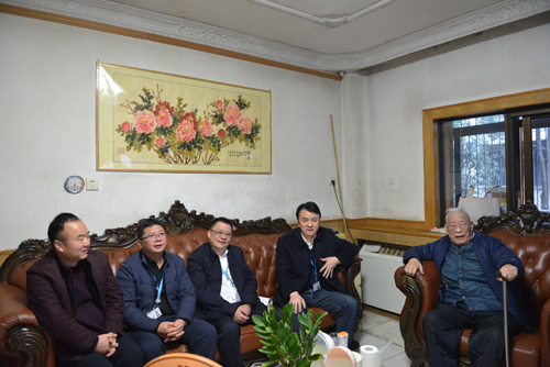在建院第一任院长、离休干部史毓阶家中,院领导与88岁高龄的史老共同回顾了湘雅三医院的发展历程,感慨医院发展要紧跟时代的脚步,不忘初心、砥砺前行。史老还非常自豪地介绍说,自己的孙子是一名湘雅临床8年制的在读医学生,一家人薪火相传,要不断为医学事业、百姓健康而奋斗。