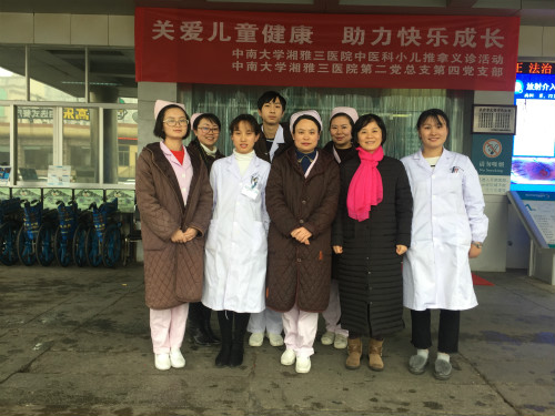 2018年12月15日上午,在湘雅三医院第二党总支第四党支部的指导下,中医科在医院门诊一楼进行了主题为“关爱儿童健康,助力快乐成长”的小儿推拿义诊活动。