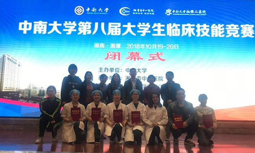 10月18日至20日,中南大学第八届大学生临床技能竞赛在湘潭举行。经过两天半紧张激烈的角逐,我院两支代表队以优异成绩分获团体一等奖和三等奖,吴明轩、陈恬、于洋、厉慧4位选手获个人赛二等奖。