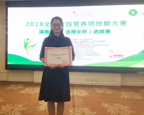 9月28日,由中国营养师协会联盟举办,湖南省营养师工作学会、长沙市营养学会联合承办的“2018全国校园营养师技能大赛”湖南选拔赛在长沙举行,我院33病室乳甲疝外科主管护师彭欢在本次比赛中取得了湖南赛区第一名的好成绩。