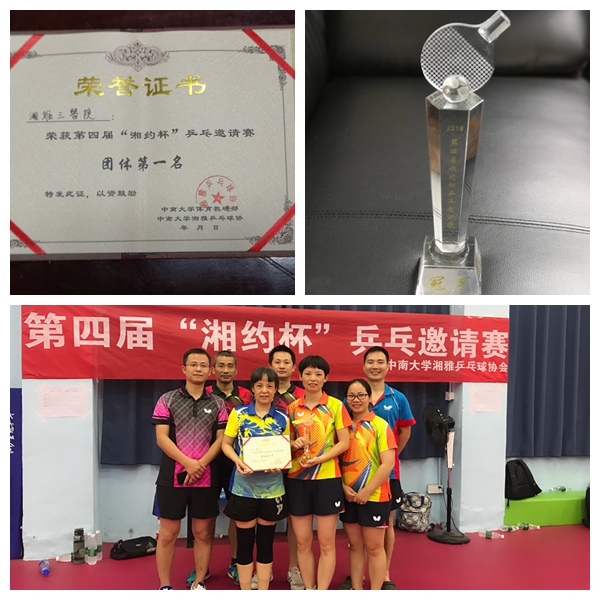 10月7日,第四届“湘约杯”乒乓球团体赛在长沙皓龙乒乓球俱乐部举行,湘雅三医院乒乓球队取得了团体第一名的好成绩。
