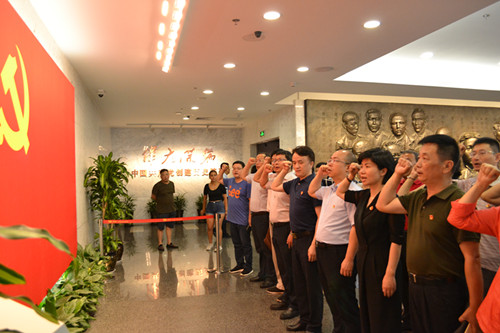 10日早上7点,参观一行乘坐火车经过5个多小时的车程抵达上海,参观中共“一大”会址纪念馆。在大厅巨幅中国共产党党旗前,党委书记何庆南带领大家庄严宣誓,重温入党誓词,铿锵有力的宣誓声响彻大厅,表达了大家为共产主义事业奋斗终身的坚定信念。《伟大开端——中国共产党创建历史陈列》由“序厅:起点”、“第一部分:前赴后继救亡图存”、“第二部分:风云际会相约建党”、“第三部分:群英汇聚开天辟地”、“尾厅:追梦”五个部分组成。党员干部瞻仰了陈列的革命文物、文献资料、历史照片和中共“一大”代表群像浮雕,深深体会到这座石库门建筑里所熔铸着党的诞生地的厚重感和使命感。