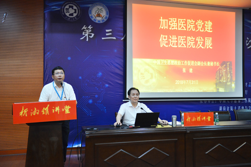 机关党建怎么抓?支部书记怎么干?7月31日晚,中国卫生计生思想政治工作促进会秘书长、国家卫生计生委宣传司原监察专员张建同志做客中南大学湘雅三医院“新湘雅讲堂”,就“新时期党建的思想与方法”做了一场既形而上又很接地气的专题讲座,阐述了机关支部党建工作的实践与方法。