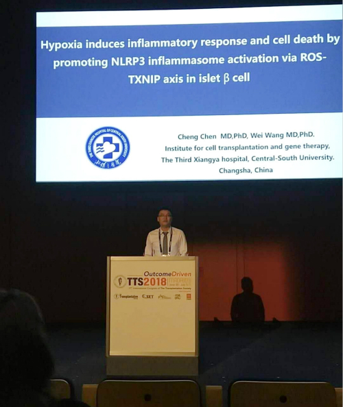 国际移植协会(TTS)成立于1966年,是致力于在世界范围内推进移植医学发展的非政府组织,在全球拥有近7000名会员。其每两年一次的大会代表了全球移植医学领域的最高学术水平。本次大会共举办专业学术讲座近200场,内容涉及肝脏、肾脏、心肺、胰腺及胰岛、干细胞移植及相关科研领域,其中中国代表共入选大会讲座29场,壁报展示23场次。本次大会王维教授率领的胰岛移植团队入选大会讲座3场、壁报展示2场次,位列中国参会团队前列,与其他国际一流移植研究团队成绩基本持平。马小倩副教授、聂唯助理研究员及陈程博士的演讲吸引了听众的兴趣,有很多其他团队代表甚至通过会后交流与王教授团队达成了合作交流的初步意向。
