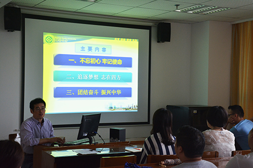 谭教授的授课生动活泼,语言风趣,分别从“不忘初心、牢记使命”、“追逐梦想,志在四方”、“团结奋斗,振兴中华”三个篇章展开交流,讲述内容深入人心。整堂党课从中国辉煌的上下五千年切入,从中国共产党的诞生过程告诫全体毕业生党员:对马克思主义的信仰,对社会主义和共产主义的信念是中国共产党人的初心,为实现共产主义而奋斗是中国共产党人的的使命。接着,谭教授引入习近平总书记“中国梦”的命题,鼓励毕业生党员们将自己的梦想融入到伟大的“中国梦”中,积极投入到未来的工作中,到国家和人民最需要的地方去发光发热,并且指出,中南大学的学子是非常优秀的高素质人才,是受到中央和全国人民关注的一个群体,更加应该在中国特色社会主义建设中干出成绩。最后,谭教授提出,“团结奋斗,振兴中华”不论是在水深火热的旧中国,还是在蒸蒸日上的当今中国,都应是蓬勃向上的年轻人们的奋斗目标。