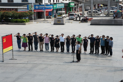 5月18日下午一点半,国家卫健委国际交流中心纪检书记、党委委员周简带领卫健委国际交流中心第二党支部的六位支部成员,湖南省卫计委副主任、党组成员彭振国带领中国(湖南)第16批援津巴布韦及第20批援塞拉利昂国家医疗队临时党支部全体成员及队员来到“第一军规广场”。在党旗下庄严宣誓,重温入党誓词。接着参观《三大纪律 六项注意》旧址,在第三展室,当大家听到影像的背景音乐正是耳熟能详的《三大纪律 八项注意》时,都不禁驻足齐声歌唱,看着胸前的五星红旗,听着铿锵有力歌声,场景令人难忘。随后全员还参观了中国工农红军桂东革命纪念馆、寨前镇红军西征誓师地等。