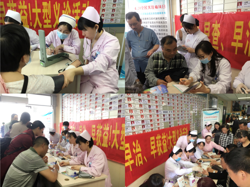 肾内科副主任桂明副教授、李维医师现场坐诊,10病区护士长吴琼英带领护士团队给前来参加义诊的108位群众进行尿酸、血糖、血压的免费检测及高尿酸相关知识宣教。义诊当场测出有高尿酸患者十余人,桂明教副授现场给尿酸高患者进行义诊,询问病史,并结合临床提出合理饮食及进一步检查等建议。护士们针对患者饮食进行健康宣教,建议痛风患者选择低嘌呤的食物,少吃海鲜、牛肉、酒类、豆类(豆腐等)、菇类食物,每天尽量多喝水,促进尿液排泄。