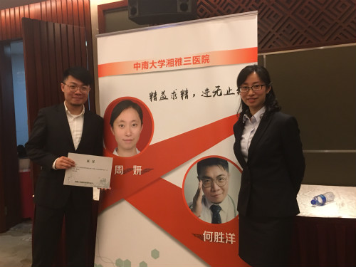 近日,湘雅三医院呼吸内科派出主治医师周妍及博士研究生何胜洋参加"中国中青年医师演讲及穿刺活检操作比赛项目"。他们以全场最高分获得出线资格,顺利进军全国赛区的比赛。