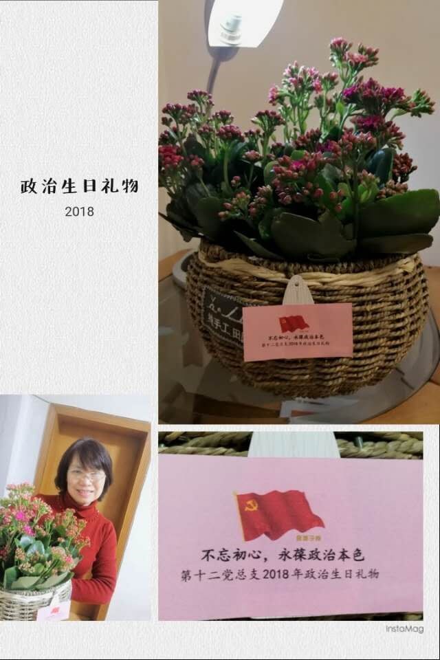 2017年改为党员政治生日送祝福+礼物;2018年政治生日贺卡改为微信电子贺卡+礼物。离退休党支部根据具体情况,合理规划后按月组织实施,为在同一月入党的党员过政治生日,确保党员全覆盖。