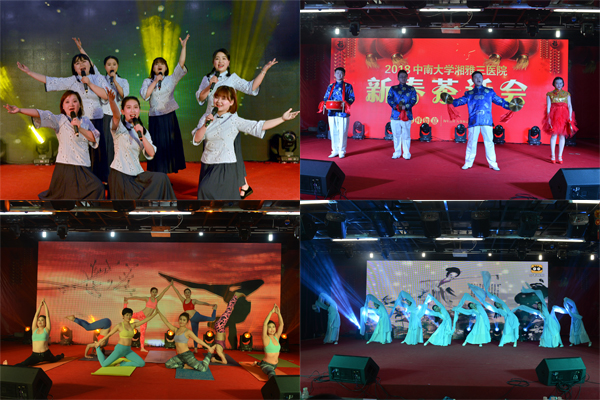 形式多样的文艺节目精彩纷呈:由离退休办、离退休总支合唱的《堂堂正正一辈子》,为大家带来了人生的思考,充满了满满的正能量;由工会瑜伽一班表演的《瑜伽妖姬》,用充满活力的舞蹈书写着青春和激情;由住院医师培训部朗诵的《幸福从奋斗中来》,带领大家在笑声中回顾了医院2017年所取得的成绩,鼓舞大家信心百倍地走向未来;由全体院领导合唱的《团结就是力量》,唱出了全院师生员工的共同心声,向全院发出了向“健康中国”和“双一流”进军的号角,激励全院师生员工携手前行,共同创造湘雅三医院更加美好的明天。