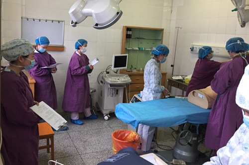 为提高医务人员对医疗意外情况的应对能力,考核工作人员对各种抢救设备、急救药品使用、心肺复苏技能的熟练掌握程度和意外情况的急救组织及处理应变能力,保证春节期间手术病人的生命安全。2月8日下午,门诊手术室联合妇科、急诊科、麻醉科开展了意外情况的应急演练活动,医务部刘丹骐,护理部科护士长龙烁,急诊科护士长肖涛及手术室护士长万晶晶亲临现场进行了指导。