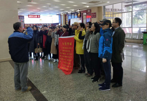 一路上“没有共产党就没有新中国”、“我的祖国”等,一首首耳熟能详的红色经典歌曲在车厢内唱响,大家用自己的歌声热情讴歌了党的辉煌历程和丰功伟绩,激发了大家爱国、爱党的热情。怀着无比敬仰的心情,神经内科支部28名党员同志来到了杨开慧烈士故居。故居位于长沙县开慧乡开慧村,由杨开慧故居、杨开慧纪念馆和杨开慧烈士陵园三部份构成。在讲解员的带领下,全体党员认真、严肃的进行参观、学习,大家从一张张照片、一件件实物中,追忆着开慧革命烈士的生平事迹,感受其伟大的人格魅力和坚定的革命信仰。在纪念馆内,杨开慧同志的雕像坚定从容、正气凛然的形象深深打动了每一位参观的同志。在雕像前,全体党员在神经内科支部书记宋治同志的引领下,高举我们的右手,庄严面神圣地宣读了入党誓词。