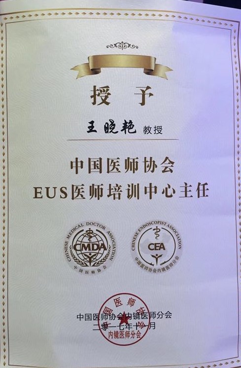 11月17日——19日,中国医师协会内镜年会在苏州召开。中国医师协会授予中南大学湘雅三医院消化内科成为首批“全国超声内镜(EUS)培训中心”,王晓艳教授任“中国医师协会EUS医师培训中心主任”及“中国医师协会消化内镜常委”。获批EUS培训中心表明消化内科超声内镜诊疗水平居国内前列,学科将定期进行超声内镜规范培训,助力我国内镜事业的健康发展。