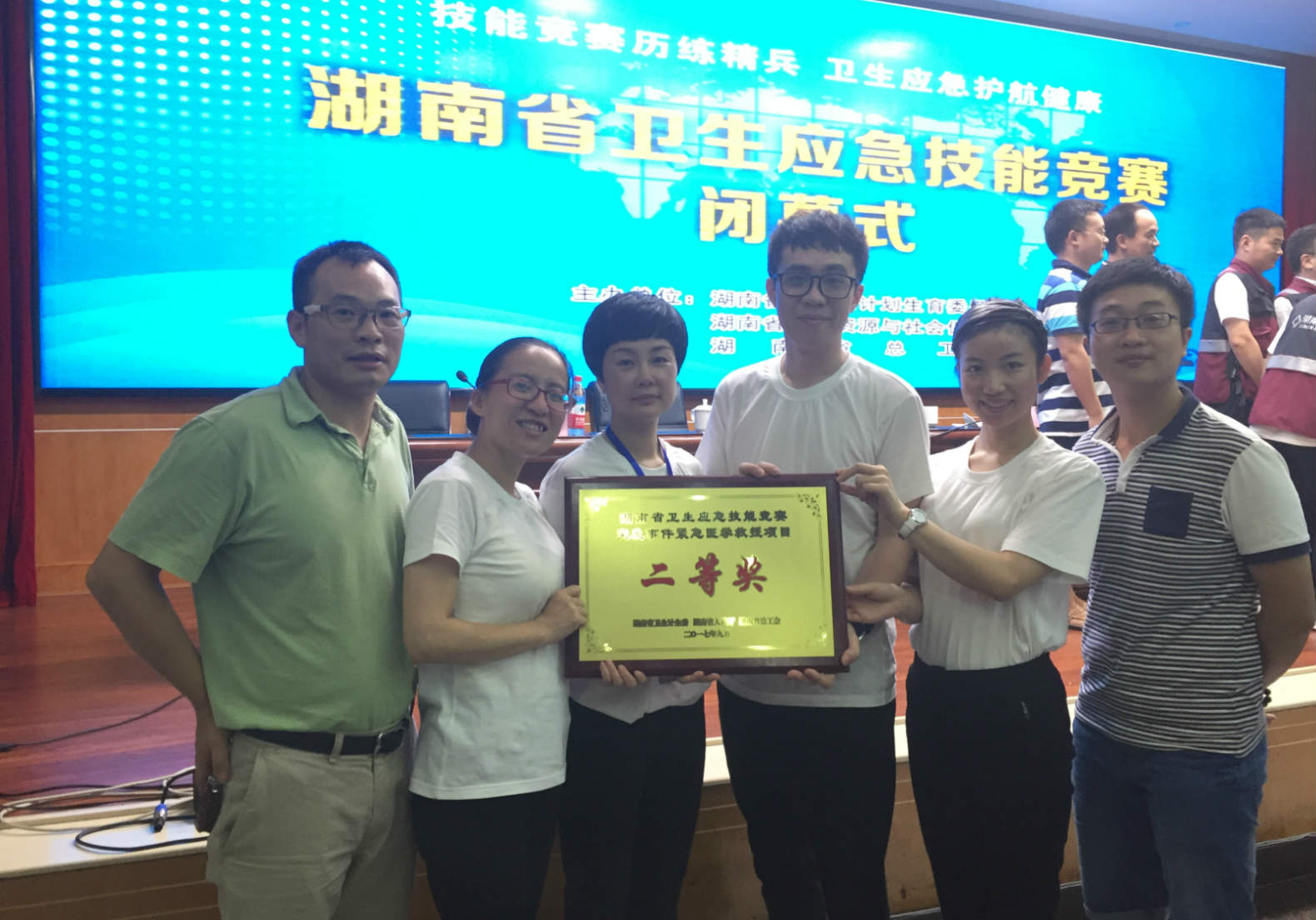 9月22-24日,由湖南省卫生计生委员会、省人力资源与社会保障厅、省总工会联合主办的湖南省卫生应急技能竞赛在湖南省社会主义学院成功举行。中南大学湘雅三医院的三位参赛队员凭借扎实的理论基础、良好的专业素养和紧密的团队合作在桌面推演、检伤分类及医疗救治、技能操作和理论考试等多个环节获得优异成绩,并最终在“突发事件紧急医学救援”项目中获得团体二等奖。其中,曹旭、颜鲲、李秋艳三位参赛队员均获得“突发事件紧急医学救援”项目个人三等奖。
