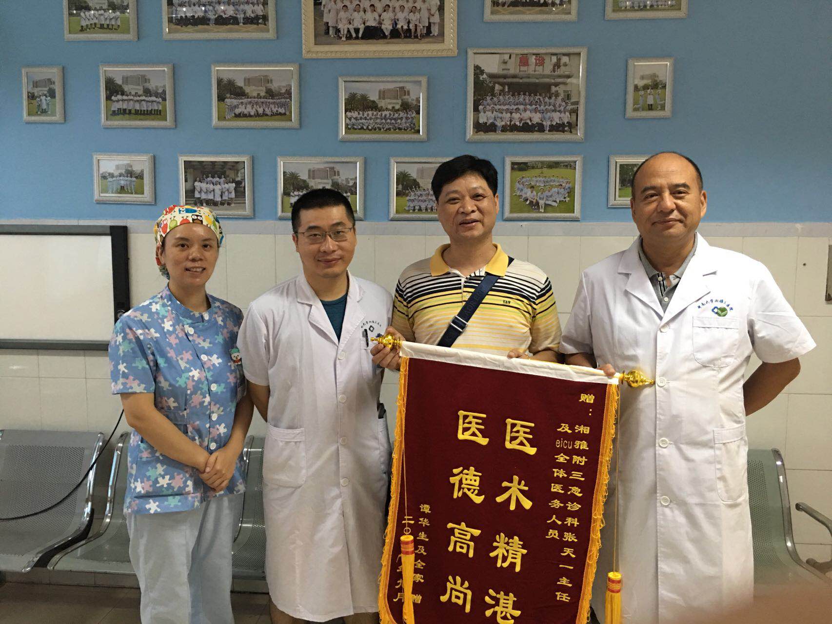 9月19日,88岁高龄的谭华生老人委托家人给急诊科主任张天一教授送来了一封感谢信和一面锦旗,向周柯夫医生及医疗组、全体医护人员表达最深切的谢意,感谢医生以精湛的医术、高尚的医德让谭老爷爷转危为安。