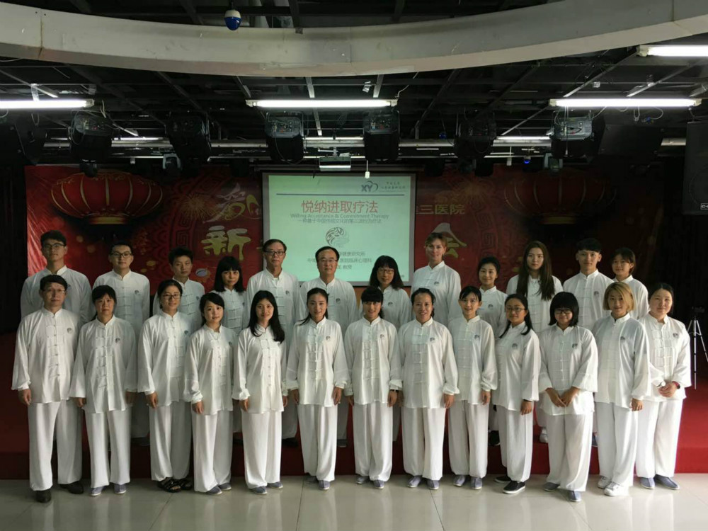 为期两天的培训不仅以教学的方式告知学员理论基础,更以丰富的练习让学员切实体验到何为悦纳。二十余名学员们在邓云龙教授及其团队的带领下,身穿着宽松舒适的带有“悦纳”标志的太极服装,脚踩简单朴实的传统布鞋,经历着一场内在的修行:从正念禅坐所整合的悦纳静功,从太极中所提取的悦纳动功,认识多个层面的自我,对自己过往应对痛苦时不良方式的剖析,悦纳自己当下所体验到的感受以及关系到生活各个方面的价值观,以类似系统脱敏的方式逐步逐级制定改变计划。