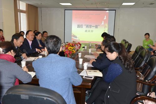 11月16日,财政部驻湖南省监察专员办事处业务二处党支部、中南大学计划财务处党支部、中南大学湘雅三医院第十党支部,联合举行践行“两学一做”学习教育座谈会,交流“两学一做”学习教育经验。财政部驻湖南省监察专员办事处党组成员、副监察专员张翠,业务二处处长、党支部书记曾宪虎,中南大学计划财务处处长彭满如,副处长、党支部书记刘奇伟,副处长龙力刚,湘雅医学院财务办主任何建辉,院领导罗爱静、陈方平、吴希林、邓云龙、杨飞龙、总会计师胡玲丽、第十党支部书记袁军,以及相关部门负责人参加。