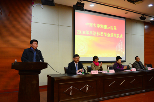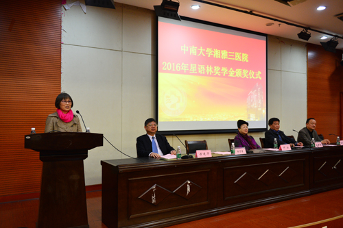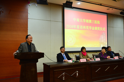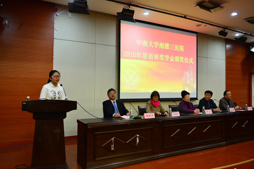 12月19日晚,第五届星语林奖学金颁奖仪式在湘雅三医院外科楼二楼国际学术报告厅举行。长沙创普房地产开发(集团)有限公司董事长林新愉先生及其夫人尹玲女士,湘雅三医院院长陈方平、副院长黄进华,教务部、研究生部等相关部门负责人及100余名师生代表参与了颁奖仪式。