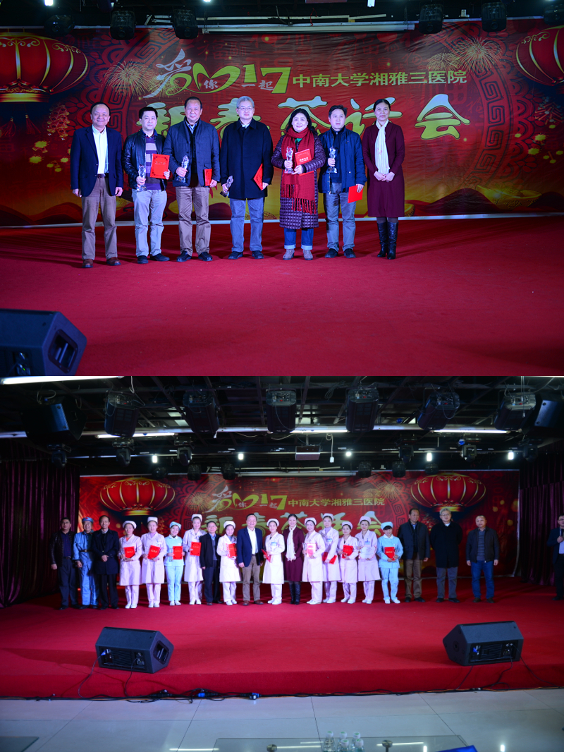 会上,院领导为我院荣获中南大学第三届“湘雅名医”、 第二、三、四届“湘雅最美护士”的获奖者颁发了奖杯和证书。科室主任代表谭国林、民主党派人士代表中国农工民主党湘雅三医院主委宋治、新退休会员代表刘佩娥等分别发表新年致辞。