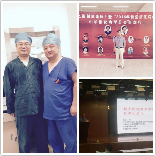 次日,邓刚博士同中华医学会消化病学分会主任委员张澍田教授等专家一道为新疆消化内外科同仁带来了肝胆胰疾病微创治疗的新理念,受到了广泛好评。