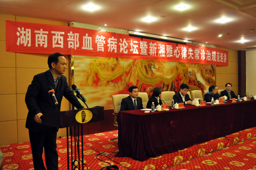 开幕式上,中南大学湘雅三医院党委副书记吴希林,怀化市第一人民医院院长李峰,怀化市第三人民医院院长俞群军,湘雅三医院原心内科主任杨侃教授,心内科张志辉副主任,心内科江凤林副教授在主席台就坐。开幕式由怀化市第一人民医院心内科主任申强主持。
