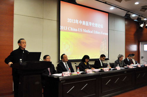 中南大学副校长田勇泉发表了重要讲话。他表示,2013年中美医学伦理论坛的召开是我校伦理学发展的一件大事。湘雅作为全国医学研究和临床服务的主力军,在伦理学研究与实践领域也走在了全国的前列,早在2000年就成立了伦理委员会,并在国际注册。最近几年,在新药临床研究的伦理审查、辅助生殖技术的伦理咨询和审查、亲体移植病例的伦理学评估等领域做了较多的工作。特别是湘雅三医院,尽管建院历史不长,但在医学伦理方面的各项工作都做得很出色,我们建立了一些规范,标准操作的规程,取得了一些公认的成绩。但从国内外的交流情况来看,我们与国际先进水平仍有不小的差距。2011年我们在雅礼协会的大力支持下,在与美国耶鲁大学多年合作的基础上,合作成功申报了美国国立卫生院(NIH)资助的重大国际合作课题“Research Ethics Training and Curriculum Development Program with China”,目的在于为学校建立一个系统性、综合性医学伦理人才培养和教育课程建设的大型国际合作研究平台,通过我校和耶鲁大学的医学伦理学研究学者构建研究团队,通力合作,借此发展多学科融合的研究项目,建立长期合作发展关系,最终将我校建成国内医学伦理学研究和培训中心。从2011年开始,湘雅和耶鲁的合作团队就湘雅医学伦理现状和未来、医学伦理委员会的现状、社会主义行为伦理的发展、GCP和医院伦理委员会现状、临床药理中的伦理问题、师资候选人的选拔、将来合作计划等多方面进行了广泛深入交流。相信通过此次论坛的交流,通过国内外的专家深入浅出的讲解,我们湘雅的伦理学研究和实践将进入一个新的阶段。