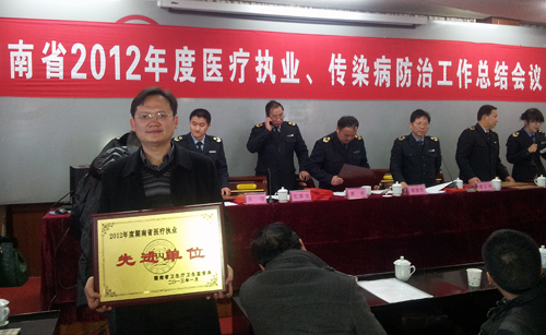 1月27-29日,2012年度湖南省医疗执业、传染病防治工作总结会议在南岳衡山召开。我院荣获2012年度湖南省医疗机构依法执业、传染病防治工作第一名。