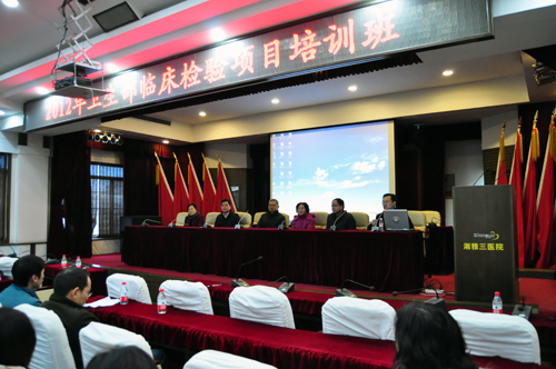 12月17日至22日,2012年度卫生部对基层医院检验人员培训项目在我院顺利开展,本次培训共接收了来自永州、湘潭各县市区共60多位基层检验人员。副院长朱晒红,医务部主任胡平安及各位授课老师出席了培训班开幕式,开幕式由医务部副主任、临床实验室管理中心主任聂新民主持。