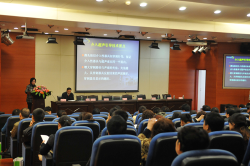 据介绍,中南大学湘雅三医院举办此次会议是为了推广和提高介入超声在临床上的应用、促进介入超声医学技术的交流和发展,作为一种微小创伤的诊治新技术,介入超声越来越受到临床医师的重视和青睐。会上,省内外专家就介入性超声的规范化操作及并发症,激光消融在肝脏和甲状腺肿瘤的应用,前列腺癌超声诊断进展,高强度聚焦超声的临床应用,以及超声引导下置管引流、Mammotome乳腺旋切、下腔静脉滤器置入等等进行了专题讲座,约200名来自省内外的代表以及研究生、住院医师聆听学术讲座,并在现场观摩了肾囊肿穿刺引流并硬化术、肝脓肿置管引流术、肾穿刺活检术、甲状腺肿瘤激光消融术等。