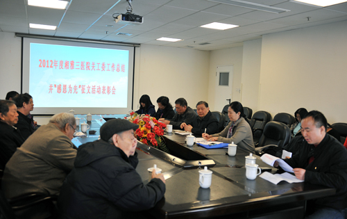 首先,院关工委常务副主任杨正斌介绍并总结了湘雅三医院2012年度关工委的各项工作。一、领导重视为关工委搭建平台,医院党委行政提供必要的经费和硬件支持。保证了关工委的工作的顺利开展。在关工委和老龄支部组织的“爱心1+1健康直通车”的帮扶活动中,院领导带头捐款捐物,在领导的带领下工作得以顺利开展,收到了良好的效果。二、围绕学校关工委工作要点,开展了以“感恩为先”主题教育活动在关爱留守儿童、感恩主题座谈会、爱心病房、“爱心1+1健康直通车——走进永顺”、感恩导师、感恩患者、感恩征文、等活动中扩大影响,把老年和青年的距离拉近了许多,使之更加和谐向上。2012年关工委的工作思路是扩大宣传力度,通过走出去请过来的方式不断强化自己。通过不断开拓创新,做到只要对医院中心工作的有利发展,对青少年健康成长有利,就把工作延伸到哪里。