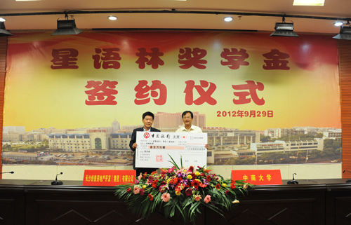 据介绍,长沙创普房地产开发(集团)有限公司始创于2003年1月,自成立以来,一直致力于房地产经营、开发和建设,已经初步形成了以房地产开发为主体,以旅游商业房产、教育地产开发为辅的相关多元化战略格局。为了更好地开展医学教育领域的公益性事业,支持中南大学教育事业的发展,公司向捐资壹佰万元人民币,用于在中南大学湘雅三医院设立“星语林奖学金”。根据协议,2012—2022年,长沙创普房地产开发(集团)有限公司每年将捐赠10万元,奖励在湘雅三医院的在读全日制研究生和本科生。